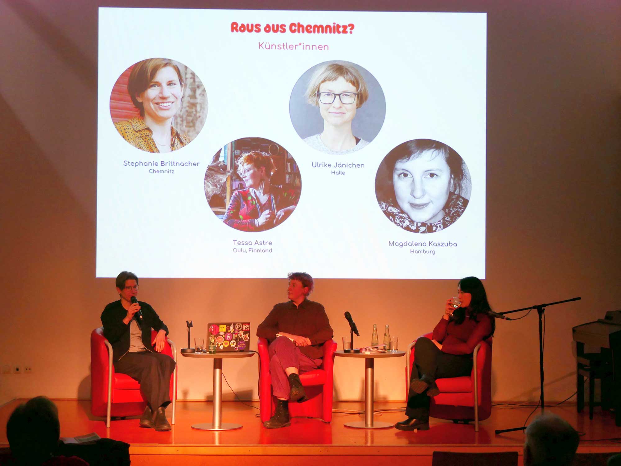 In February 2026, Magdalena Kaszuba and Stephanie Brittnacher gave a reading titled “Raus aus Chemnitz?” at the Chemnitz City Library. The reading was held in collaboration with Vũ Vân Phạm—a cultural worker and education officer who shared her story as part of the project.